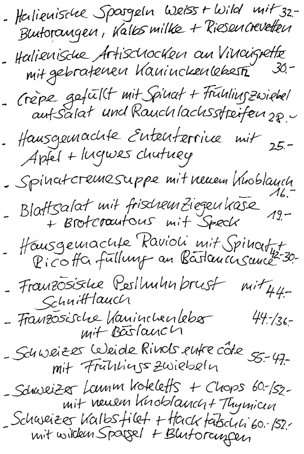 Erste Frühlingsboten treffen ein in unserer Küche: Schöne kleine italienische Artischocken kombiniert mit gebratener Kaninchenleber und alternativ mit Riesencrevetten zum Beispiel. Oder ein Rührei aus Bio Eiern mit selbstgepflücktem Seetaler Bärlauch und schottischem Rauchlachs.